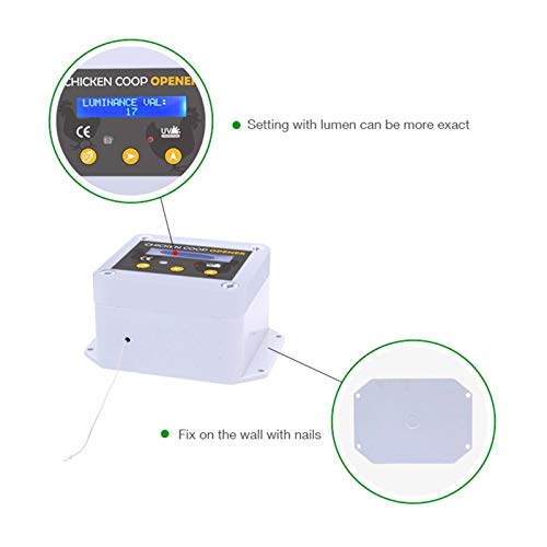 【Einfach zu installieren】 Auto Chicken Coop Türsteuerung Mit All-in-One-Design, ohne komplizierte Verkabelung oder Verkabelung. Befestigen Sie den Coop-Türöffner an Ihrem Hühnerstall, schließen Sie das Kabel an die Tür an und schon kann es losgehen!