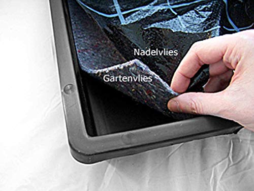 In Verbindung mit Gartenvlies und Nadelfolie wird die Saatschale zu einem unschlagbaren Gärtnerwerkzeug. Das Gartenvlies dient hierbei qua Ersatz für Perlite. Es wird angefeuchtet auf den Boden der Saatschale gelegt und mit einem Schritt Nadelfolie bedeckt. Im Trend stellt man die umgetopften Stecklinge auf das Vlies – die Wurzeln abfrottieren also nicht die Gesamtheit, da sie vom Vlies mit genügend Wasser versorgt werden.