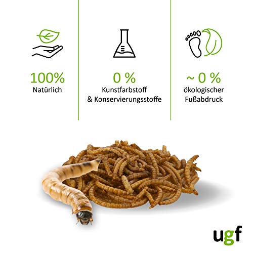 🐛 GESUNDES ESSEN – Die Konsumierung von getrockneten Mehlwürmern fördert gesunde Haut, Fell, Federn, Krallen, Auflage, Gelege, Wachstum und stärkt das Immunsystem der Tiere. Die Konsumierung dieser getrockneten Würmer verkleinert den Gesamtverbrauch von Tierfutter.