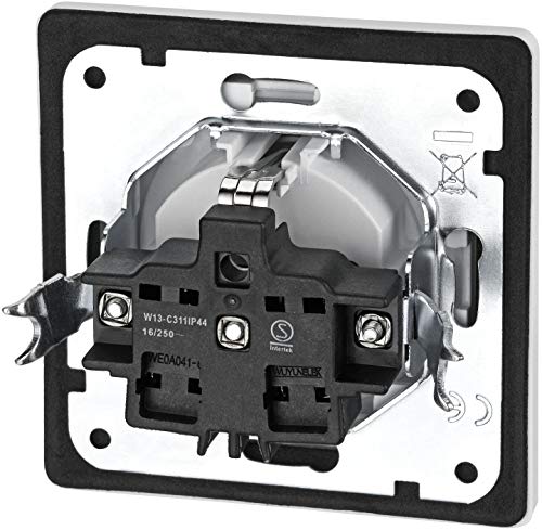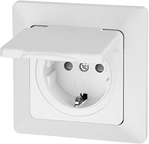 Kompakte im Übrigen stabile Feuchtraum Einbausteckdose über Federdeckel im Übrigen Einstecksicherung. Spritzwassergeschützt, incl. Silikonring. Ideal brauchbar z.B. sondern den Einsatz im Balkon, Terrasse im Übrigen Badezimmer