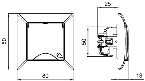 80 x 80mm (L x B) – Einbautiefe 25mm – Lochkreis 55-60mm – passt in Schalterdosen 60mm