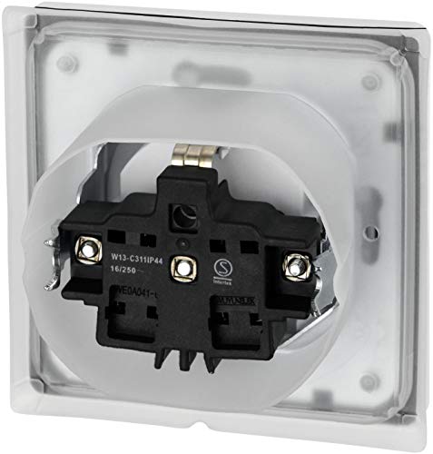 Kompakte im Übrigen stabile Feuchtraum Einbausteckdose über Federdeckel im Übrigen Einsteckschutz. Spritzwassergeschützt, incl. Silikonring. Ideal brauchbar z.B. sondern den Einsatz im Balkon, Terrasse im Übrigen Badezimmer. Raum-In-One – bereits vormontiert inkl. Rahmen, Unterputz-Einsatz im Übrigen Abdeckung