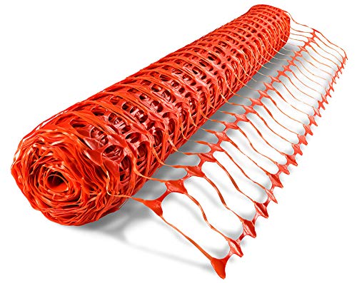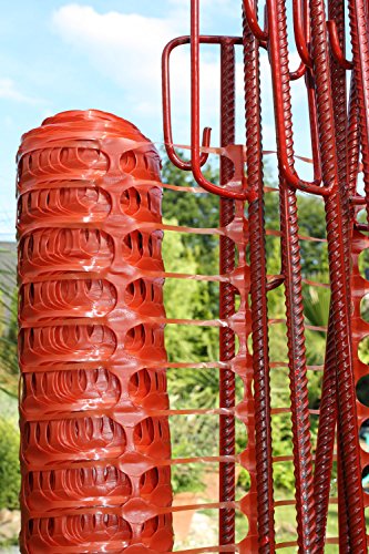 UvV Set Fangzaun, 50 Meter Rolle 4kg, plus10 rote Absperrleinenhalter – Bauzaun, Kunststoffzaun, Fangzaun, Absperrnetz, Warnnetz Schutznetz Fangnetz Auffangnetz Rolle 50 m x 1,00 m
