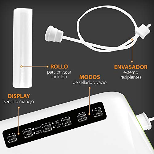 Das Display verfügt über intuitive Berührungstasten, damit Sie kinderleicht die Hauptfunktionen detachieren können. Die neuste Technologie macht sämtliche ihm einen unersetzbaren Alltagshelfer. Die Nahrungsmittel werden im perfekten Zustand aufbewahrt und ihre Lebensdauer wird verlängert. Vitamine und nutritive Eigenschaften bleiben erhalten, da sich ohne Sauerstoff keine Mikroorganismen entwickeln können.