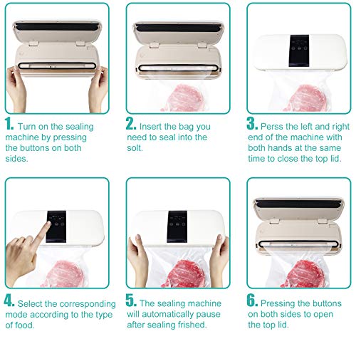 🌟 Entsprechend für vielerlei Arten von Lebensmitteltüten: Diese Vakuumiergerät kann Lebensmittelbeutel problemlos innerhalb von 30 cm versiegeln und unterstützt den gleichzeitigen Betrieb mehrerer Lebensmittelbeutel, was nicht dagegen Zeit, sondern Bekannt als Mühe spart.(Nicht Entsprechend für Taschen ohne erhabene Oberfläche und beidseitig glatt.)