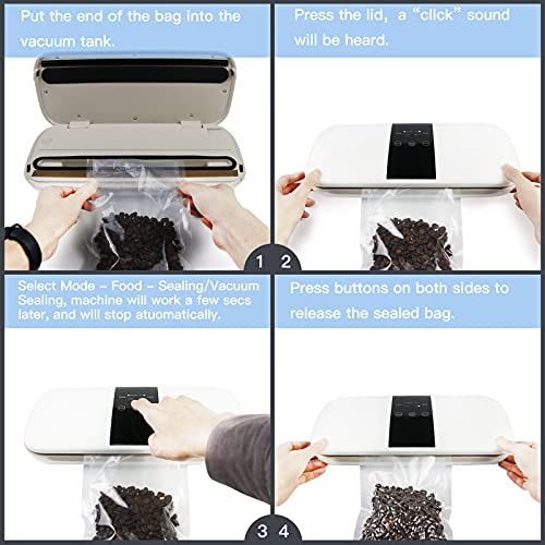 🍑Automatischer Betrieb: Der Vakuumvorgang erfolgt automatisch und Sie können das Staubsaugen und Versiegeln einfach mit den durch LED-Leuchten angezeigten Tasten steuern. Der Vakuumdruck reicht von 50 bis 60 kPa, ohne dass Lebensmittel beschädigt oder deformiert werden.