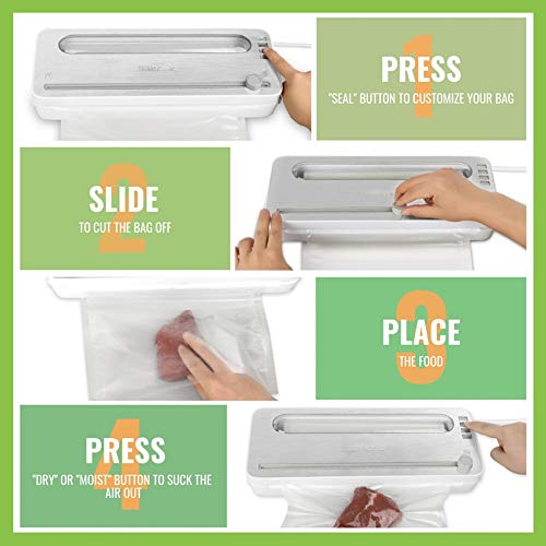 Abhalten Sie Ihre Taschen individuell: Eingebauter Rollenspeicher und -schneider ermöglichen es Ihnen, Ihre Beutelgröße leicht an Ihre Bedürfnisse anzupassen, sintemal die LED-Anzeigeleuchte Sie leicht durch den Vakuum-Versiegelungs-Handlungsschema führt.
