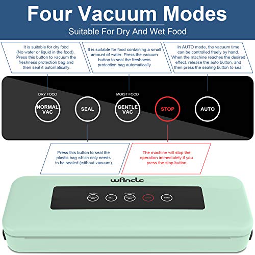 ✅[4 Vakuum-Dichtungsmodi für Nass- und Trockene Lebensmittel]: Wancle Vakuumierer Folienschweißgerät bietet Ihnen 4 Vakuummodi : NORMAL VAC, GENTLE VAC, SEAL und AUTO. Für Nahrungsmittel mit Wasser und Öl wird ein sanfter VAC-Modus empfohlen.