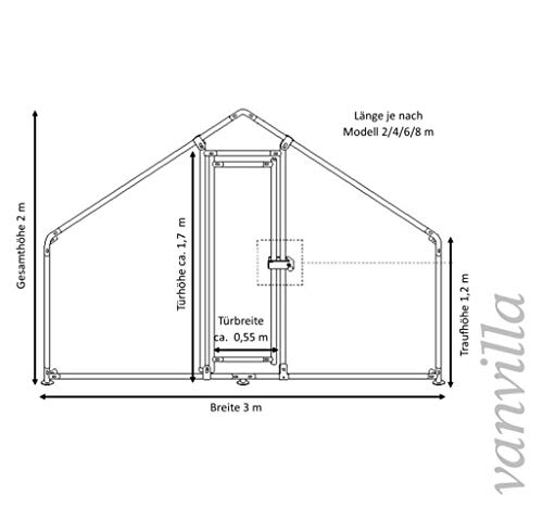 – Außenabmessungen LxBxH: ca. 3x8x2 m
