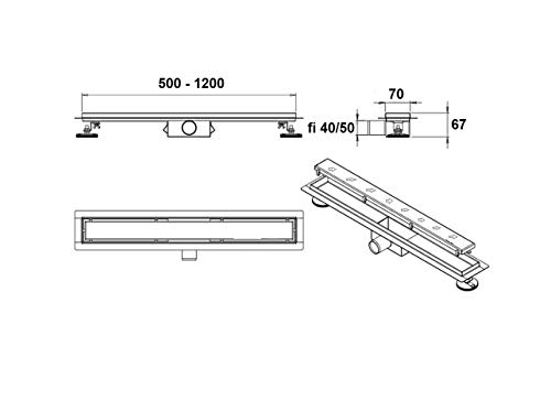 DIN Anschlüsse für den Bearbeitung, Ablaufgeschwindigkeit 49L/Min, verstellbare Montagehöhe, Einbautiefe: 52 mm, Länge: 50, 60, 70, 80, 90 cm.
