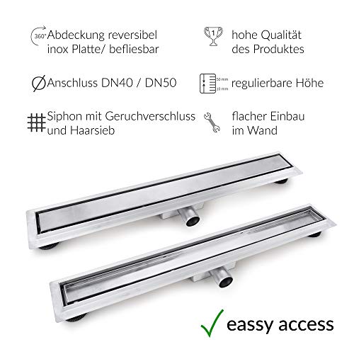 Ein barrierefreier Einbau, sowie flexibler Einsatz durch Höhenverstellung und verschiedenen angebotenen Längen bieten die Möglichkeit die Duschrinnen auf die Gegebenheiten anzupassen.