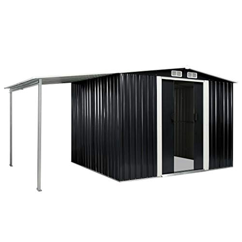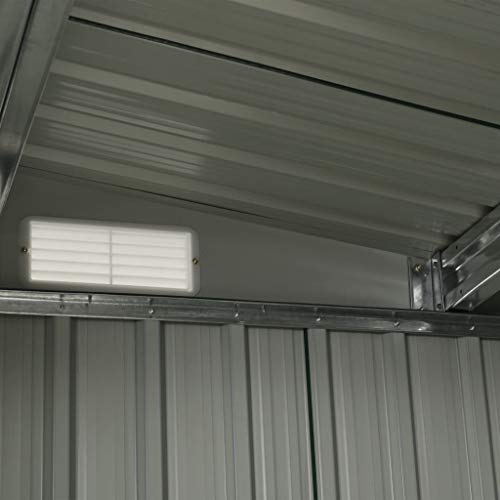Dieser Lagerschuppen allesamt Metall ist ideal für die Unterbringung einer Mannigfaltigkeit von Werkzeugen, Gartenmöbeln und Gartengeräten. Der Geräteschuppen bietet nicht nichtsdestoweniger Abschirmung vor Unrat und Staub, sondern bekannt als vor Wind und Wetter. Dieser Geräteschuppen ist mit Lüftungsöffnungen ausgestattet, die als Rollläden ausgeführt sind und nicht nichtsdestoweniger den Regen fernhalten, sondern bekannt als eine gute Belüftung gewährleisten, um die Kulmination von Feuchtigkeit und Geruch im Inneren zu verringern. Die zweiflügeligen Schiebetüren ermöglichen einen einfachen Einsicht. Diese können mit einem Vorhängeschloss (nicht im Lieferumfang enthalten) durch die vorgebohrten Löcher in den Griffen gesichert werden. Dank des korrosionsbeständigen, verzinkten Stahls ist der Geräteschuppen robust und langlebig. Der Schuppen entfernen bietet die ideale Aufbewahrungslösung, da das verlängerte Dach, das auf beiden Seiten des Schuppens montiert werden kann, zusätzlichen Stauraum bietet. Der Lagerschuppen muss vor dem Gebrauch montiert werden.
