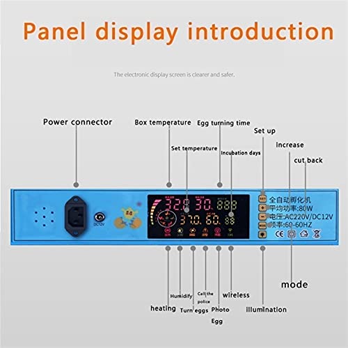 Feuchtigkeitskanäle, Feuchtigkeitsregulierung: Das Smart Airflow-System maximiert den Eierkomfort und minimiert die menschliche Störung und das Eierfach sorgt für einen guten Luftzirkulation.Übertemperaturalarm reduziert den Aderlass Ihrer Fehler wegen des Inkubationsprozesses.