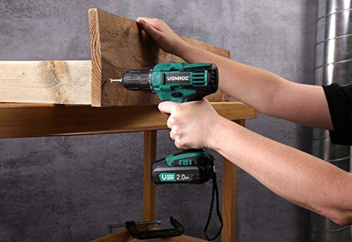 VONROC Akku-Bohrmaschine VPower 20V, Komplettset mit 1x 2.0Ah Akku, Schnellladegerät, Bits und Aufbewahrungstasche