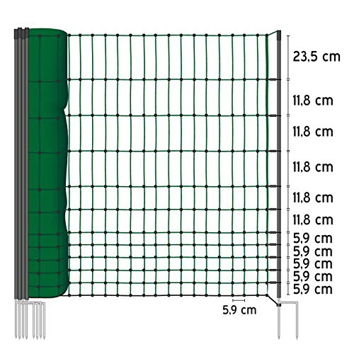 VOSS.farming 50m Geflügelnetz, Classic, 112 cm Netzhöhe, Hundenetz, Katzennetz, Gartensicherung, Weidezaun Ohne Strom