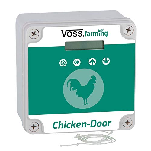 VOSS.farming Set Chicken-Door automatische Hühnertür, Türöffnung, Türöffner für Hühnerstall, Hühnerhaus, mit Lichtsensor, Zeitschaltung, Manuell