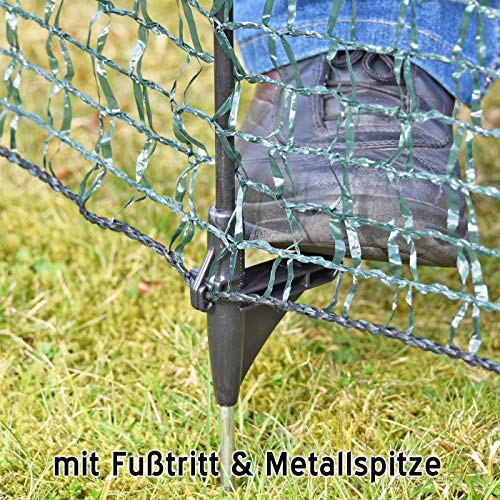VOSS.farming 20m Gartennetz, Universal Begrenzungszaun, 80cm, 12 Pfähle, dunkelgrün, Hundezaun Campingzaun Beetschutz