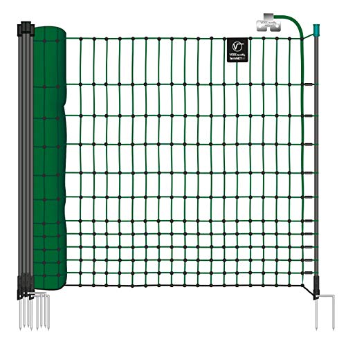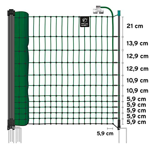 VOSS.farming farmNET 25m Hühnerzaun, Geflügelnetz, 112cm, 9 Pfähle, 2 Spitzen, grün, elektrifizierbar, Hühnernetz, Hundenetz, Katzennetzâ¯