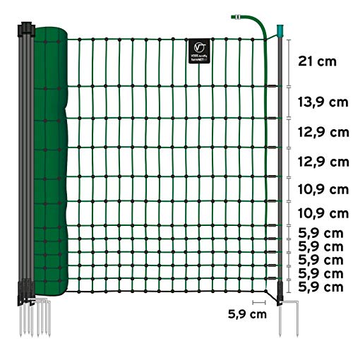 VOSS.farming farmNET Hühnerzaun 25m, Geflügelnetz, 112cm, Hühnernetz, Hundenetz, Katzennetz,â¯9 Pfähle, 2 Spitzen, grün, ohne Strom