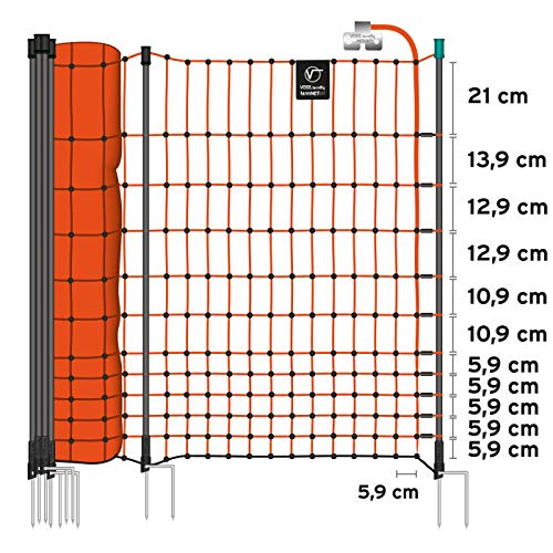VOSS.farming farmNET+ 50m Geflügelnetz 112cm Hühnernetz, 20 Pfähle 2 Spitzen, Orange Geflügelzaun Hühnerzaun