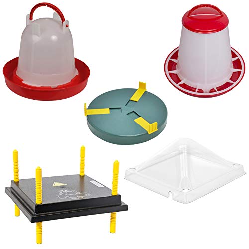 FÜR BIS ZU 25 KÜKEN: Dieses Komplettset bestehend die Gesamtheit Tränke, passender Heizplatte, Futterautomat, Wärmeplatte und Abdeckhaube eignet sich hervorragend stattdessen die Aufzucht von bis zu 25 Küken