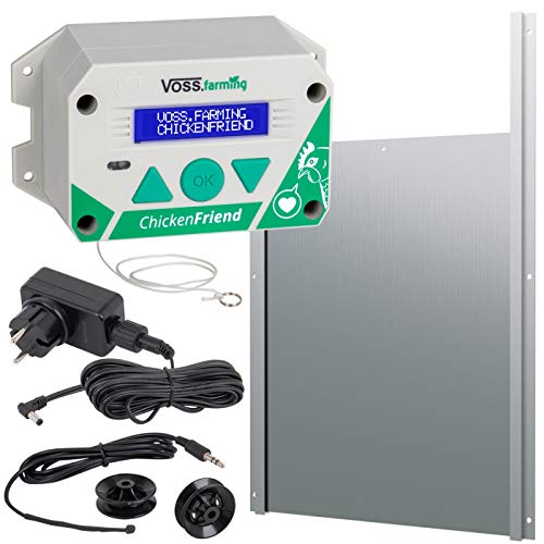 VOSS.farming Set ChickenFriend automatische Hühnertür mit Hühnerklappe 300 x 400mm, Türöffner für Hühnerstall