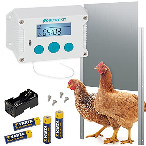 VOSS.farming Set Poultry Kit automatische Hühnertür + Aluminium Hühnerklappe 300 x 400mm, Türöffnung für Hühnerklappe…