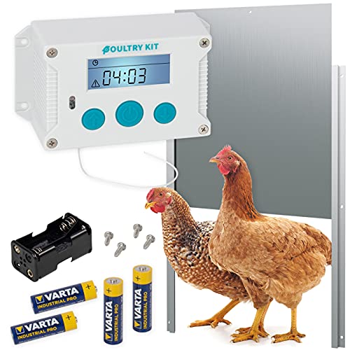 VOSS.farming Set Poultry Kit automatische Hühnertür + Aluminium Hühnerklappe 430 x 400mm, Türöffnung für Hühnerklappe…