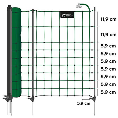 VOSS.PET 15m 65cm, petNET + Hundezaun, Welpenzaun, Kaninchenzaun, Kleintierzaun, Elektrozaun, 14 Pfähle, 1 Spitze, Grün