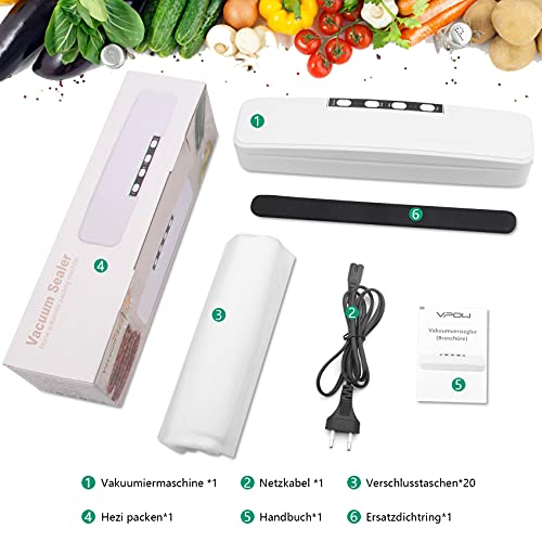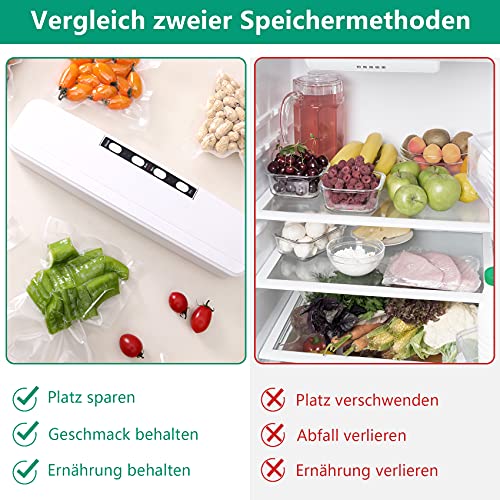 [Komplettes Zubehör] 20 Vakuumierbeutel,1 deutsche Bedienungsanleitung, 1 Vakuumiergerät, 1 Ersatzsiegelstreifen. Sie können Ihre Lebensmittel sofort nach Erhalt des Vakuumierers versiegeln. Für Ihre Familie wird dies ein notwendiges und sparsames Küchengerät sein, mit zwar einer Fahrt zum Supermarkt pro Woche.