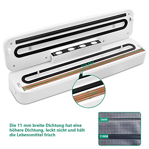 [Einfach und leicht]: Der neue VPOW Vakuumierer mit den Maßen 360 * 85 * 65mm. Dieser automatische Vakuumierer hat ein schlankes und kompaktes Design, so dass Sie ihn leicht in Ihrem Schrank unterbringen können. Mit einem Gewicht von 0,63 kg können Sie es mit einer Hand anheben. Angemessen für Schweißnähte bis zu 30 cm.