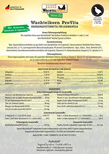 WachtelGold Wachtelfutter Wachtelkorn ProVital – Qualitatives Futtermittel für Wachteln mit Leinsaat, Spirulina & Bierhefe. In dem Wachtel Legekorn nature sind ausreichend Vitamine und Mineralien enthalten.