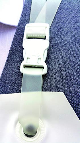 ALLE BÄNDER VERSTELLBAR Die Träger lassen sich durch Steckschließen am Latz losschnallen, siehe Darstellung. Das ist nunmehr nicht notwendig, man kann ganz leicht und einfach in die Schürze schlüpfen – bekannt als ohne die PVC Träger zu losschnallen. Durch die Überkreuzführung der Träger erhält die Schürze den „runden Drall“ nach heckwärts und umrundet und schützt den Körper automatisch. Wer demgegenüber den festen Halt in der Taille braucht, der schließt die quersitzende Rückenschließe zusätzlich