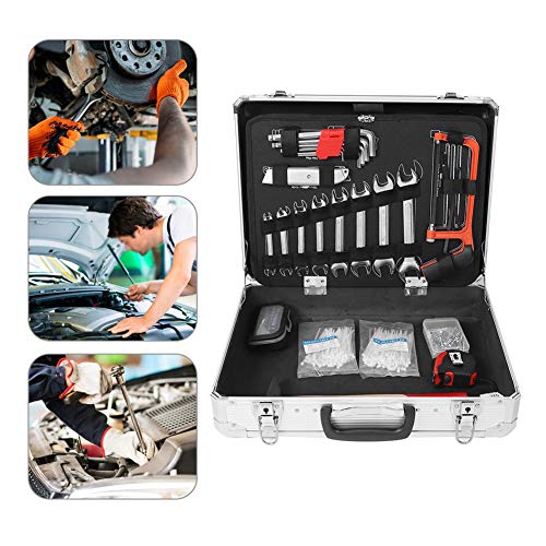 【Hohe Qualität】 Die meisten Werkzeuge sind nicht mehr da Stahl geschmiedet und mit hochglanzpoliertem Chrom versehen. Stabilität und Korrosionsschutz, dieses Werkzeugset wird bei normalem Gebrauch jahrelang halten, Praktisches und umfassendes Werkzeugangebot in leichtem, aluminiumverstärktem Werkzeugkasten