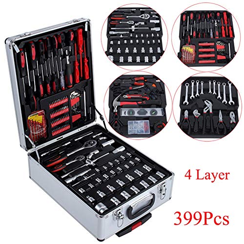 【Perfekt Ausgerüstet】Unser Werkzeugkoffer ist mit 399 teiligem Werkzeugsortiment ausgestattet. einschließlich Schraubenschlüssel, Schraubendreher, Zangen usw. So haben Sie bei nicht mehr da Gelegenheit das richtige Werkzeug griffbereit