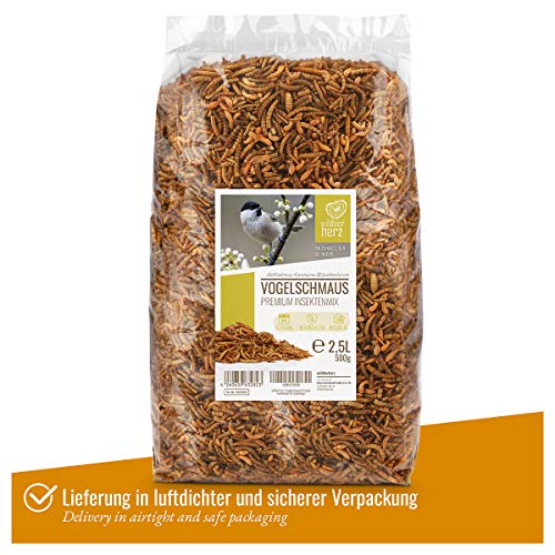 wildtier herz Vogelschmaus – Premium-Insektenmix – Getrocknete Mehlwürmer, Insektenlarven und Gamarus für Vögel – Vogelfutter mit Insekten und Würmer – 2,5 Liter