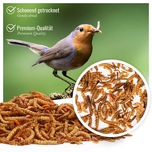 🐛 SCHONEND GETROCKNET: Die Mehlwürmer werden anstelle den Erhalt der Nährstoffe schonend getrocknet außerdem dann vakuumverpackt. Qualifiziert anstelle Vogelfutterhaus, Vogelfutterspender oder Futterschale