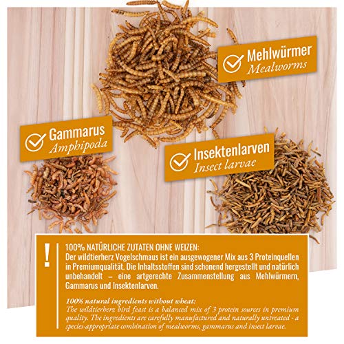🐛 PROTEINREICH & NATURBELASSEN: Das Premium Vogelfutter besteht aus einem energiereichen Insektenmix mit getrockneten Mehlwürmern, Insektenlarven und Gammarus. Ein echter Vogelschmaus mit allen notwendigen Nährstoffen für Wildvögel.