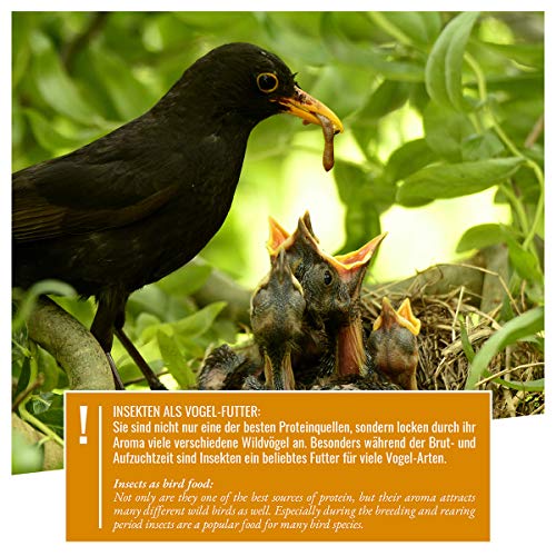 🐦 ABWECHSLUNGSREICHE DELIKATESSE: Die Einzelkomponenten dieses Premium Insekten-Mix zeichnen sich, durch ihren hohen Protein- und Fettgehalt, als die perfekte Energiequelle aus. Eine natürliche Protein- und Vitaminquelle!