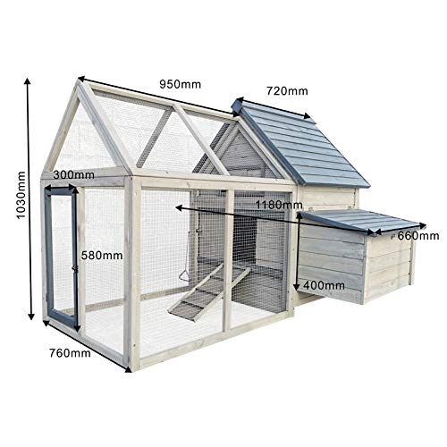 Der Hühnerstall wurde jedweder hochwertigem Holz gefertigt und braun-weiß gestrichen. Die Farbe sorgt nicht hingegen für eine moderne Optik, sondern schützt das Holz alias vor der Witterung. Das Freilaufgehege ist rundheraus mit Draht jedweder verzinktem Stahl versehen. Dieser ist wetterfest und hält den Küssen der Hühner sowie etwaigen Raubtieren stand.