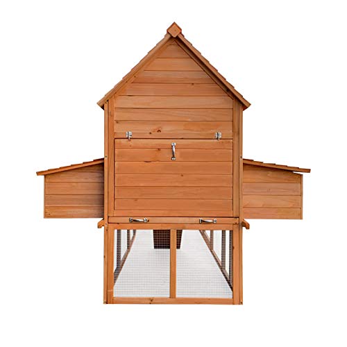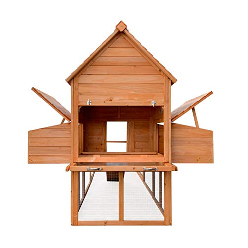 Das Haus weist an den Seiten zwei große Nistkästen auf, die jeweils mit einem aufklappbaren Deckel versehen sind. Alle beide lassen sich bei Bedarf öffnen, sodass das Innere alles klar! erreichbar ist. So ist es Ihnen womöglich, nach nistenden Hühnern zu schauen oder Ihr Frühstücksei zu entnehmen. Unterhalb des Hauses findet sich eine verzinkte Schale, die ausgezogen werden kann. Dies ermöglicht eine einfache Reinigung des Untergrunds im Haus.