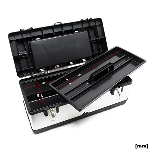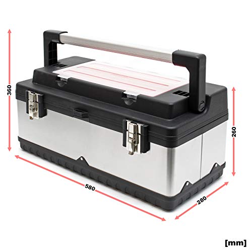 Mit diesem Werkzeugkoffer erhalten Sie einen hochwertigen Koffer jeder Edelstahl. Der Werkzeugkoffer in Profi-Optik bietet mit seinen 59 x 28 x 25,5 cm genügend Platz Zugunsten zahlreiche Arbeitsutensilien.