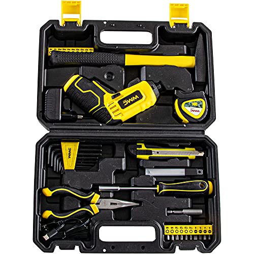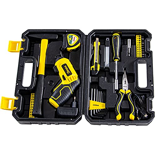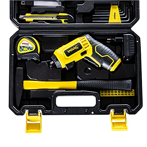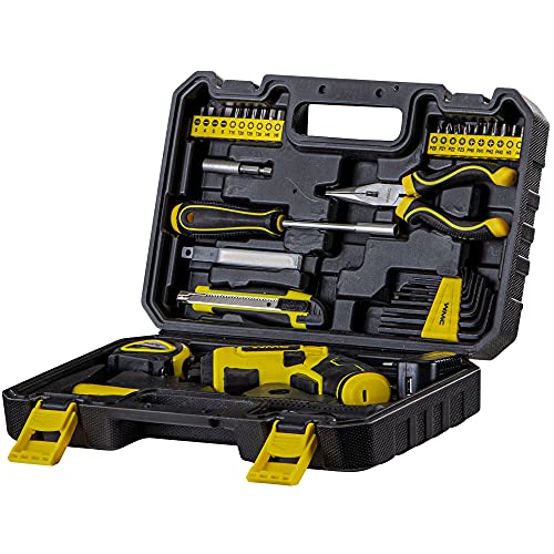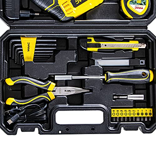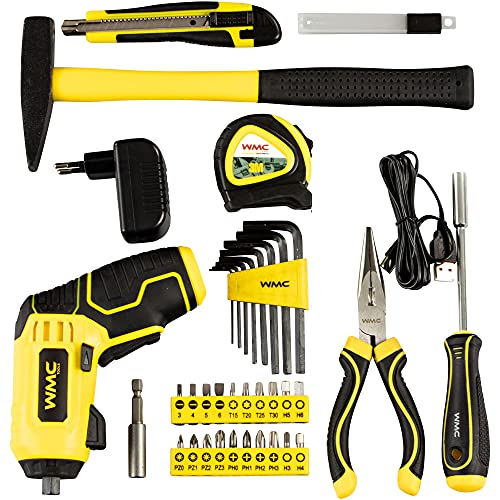 Der WMC TOOLS Werkzeugkoffer mit 47 teiligem Werkzeug ist ein praktisches Haushalts Werkzeug Set an Stelle Heimwerker. Das Werkzeugset Haushalt eignet sich an Stelle Potpourri anfallenden Werkarbeiten und Reparaturen rund um Haus, Garten oder Kfz Schrauber. Zum Werkzeugkoffer Set gehört ein Akkuschrauber mit passendem Bit Satz, Bit Schraubendreher, Hammer, Maßband und vieles mehr. Mit diesem übersichtlichen Werkzeugset kann gleich darauf losgelegt werden!