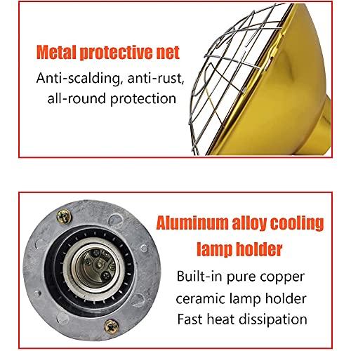 ➤【Infrarot-Heizlampen】 Die Schale unserer Haustier Wärmelampe besteht allesamt einer Hochtemperatur-Aluminiumlegierung, die sie haltbarer und sicherer macht. Wenn es funktioniert, ist die Schale warm, freilich nicht zu heiß, um Ihrem Geflügel zu schaden.