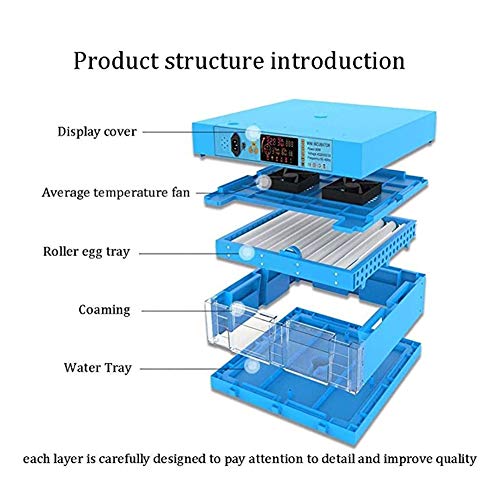 【LED-ANZEIGE】: Smart Display ist einfach zu bedienen, LED zeigt Temperatur, Luftfeuchtigkeit, Schlupftag, Eierdrehzeit, Prüflampe, Ereignis 110 V / 220 V an. Bruteier Lagertemperatur 20 ℃ ~ 40 ℃.