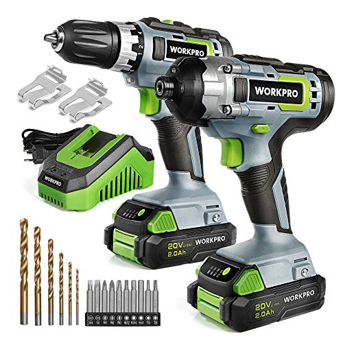 WORKPRO 2tlg. Akkuschrauber Schlagschrauber Set 20V 2,0Ah, 2 Akku und Ladegerät inkl. mit 6tlg. Bohrer und 10tlg…