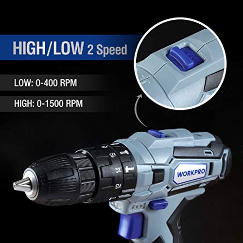 WORKPRO Akkuschrauber 12V Bohrschrauber inkl. 2 x 2,0Ah Ersatzbatterie und Schnellladegerät,20 Nm,variable Drehzahlen,18…