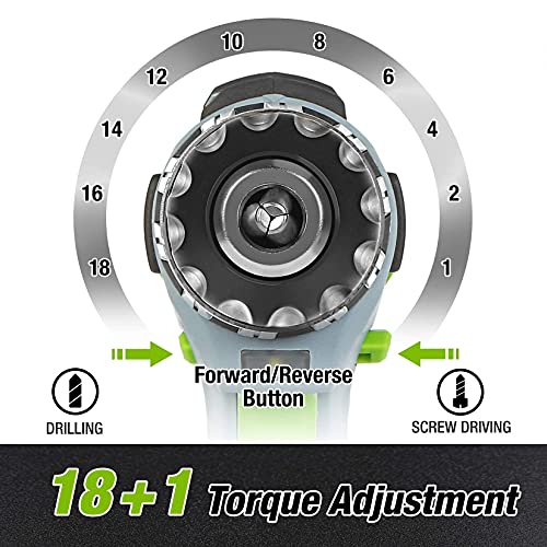 🌟【𝙑𝙄𝙀𝙇𝙎𝙀𝙄𝙏𝙄𝙂】Das Stromspeicher-Bohrschrauber mit 18+1 Drehmomenteinstellung, die eine akribisch Angleichung zum Bohren von Holz, Metall, Kunststoff usw. ermöglicht. Das max. Drehmoment erreicht 25Nm, perfekt zugunsten Schnelles Einschrauben und einfaches Bohren von Reparaturen, Montagen nahe Heimwerken und Arbeitsplätzen.