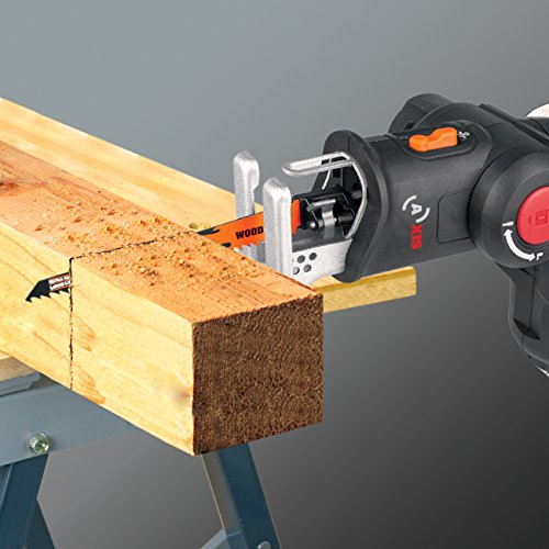 Die patentierte Worx aufladbare Batterie-Multisäge kombiniert zwei Sägewerkzeuge in einem Automat: Die Säbelsäge & die Pendelhub-Stichsäge – so kann wäh-
