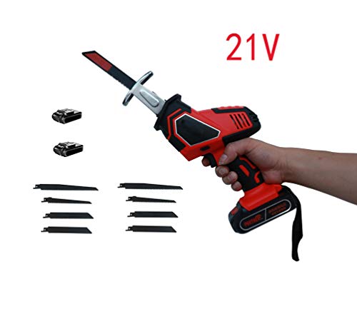 MULTI-ZUBEHÖR – Die recoprocating Säge umfassen 21V leistungsstarke Batterie & 1-Stunden-Ladegerät qucik, 4-8 Schneidmesser für Metall und Holz Kürzen, Tasche Werkzeug. Abtransportieren und es verwenden, ohne anderes Zubehör zu kaufen.